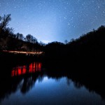Date Taken: 12/13/2014 Location: Sim’s Pond A car races by a placid Sim’s Pond under the stars.