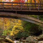 Photo by: Appalachian Exposures Location: Boone Fork Trail View of Boone Fork Bridge 10-14-13. Lots a good color on the BRP around mile 300!
