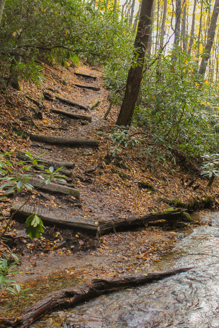 At several points along the trail, there are small cascades in Sims Creek.