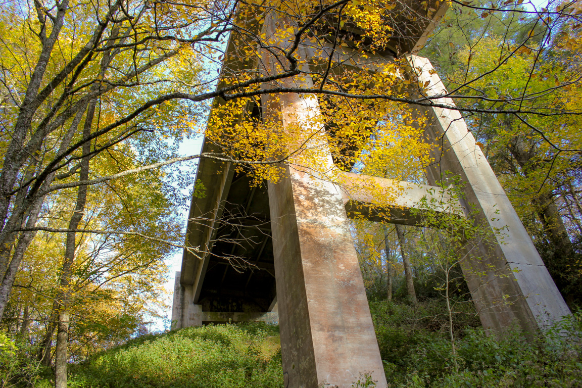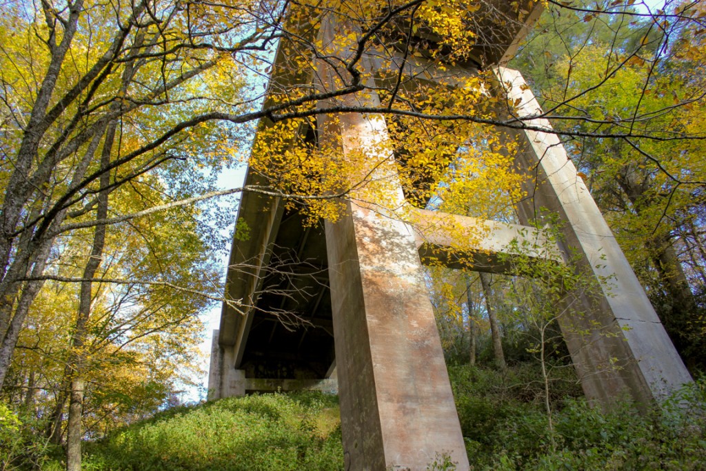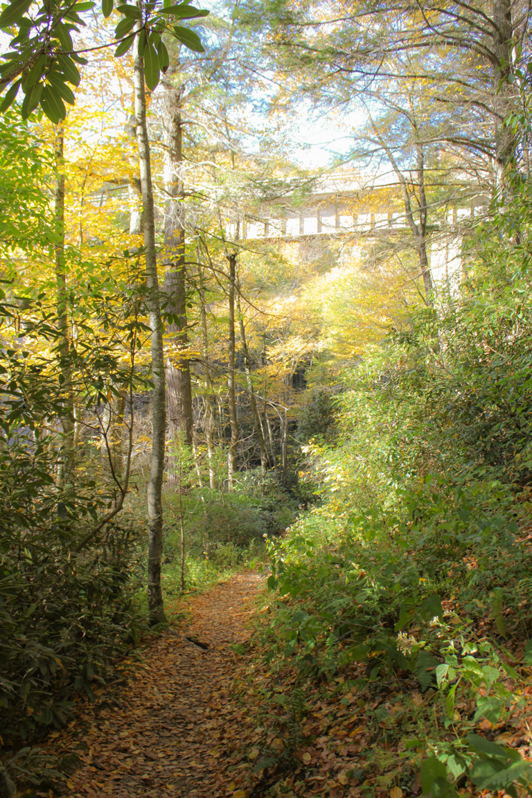 About 0.7 miles in, the Sims Creek Viaduct starts to show through the trees.