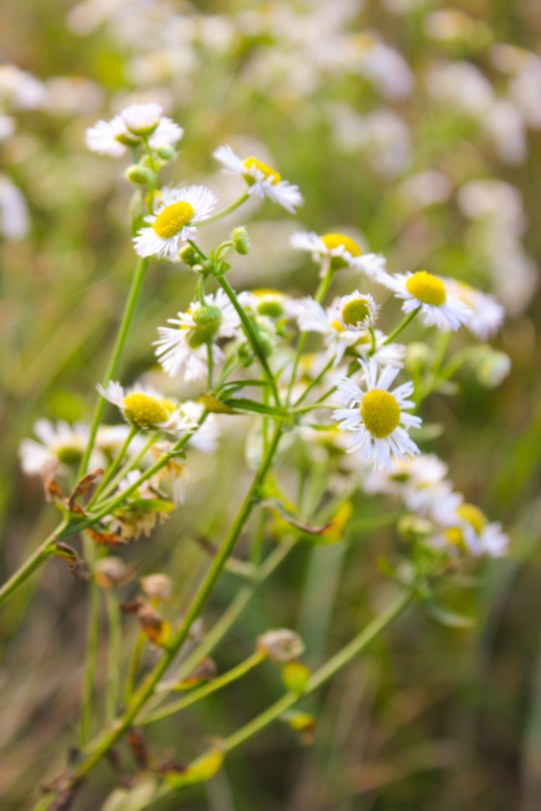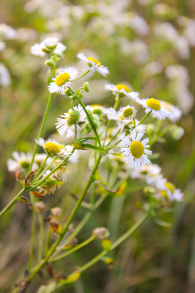 The sunny valley still has patches of daisy fleabane scattered across it.