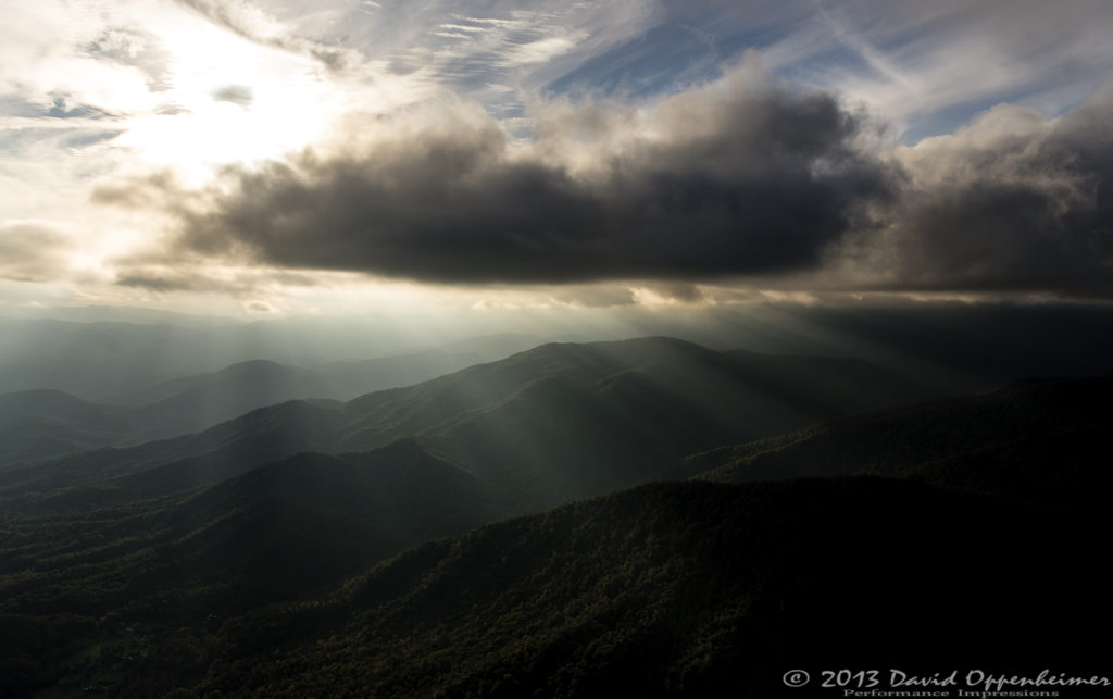 Light Rays under cloud – aerial photo from October 18, 2013 along the Blue Ridge Parkway – © 2013 David Oppenheimer – Performance Impressions Photography Archives